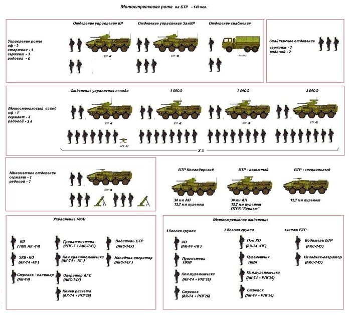 Когда МО говорит что всем обеспечивает, оно не врет. Да, обеспечивает или старается обеспечить. Но есть нюанс - обеспечение только тем, что положено по штатной структуре. Вот к примеру штатная структура мотострелковой роты на БТР. Вы видите там авто или мотоциклы повышенной проходимости? Нет, ибо не положено по штату!