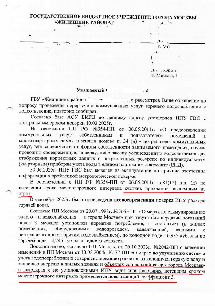 Ответ от местного Жилищника (больше чем через месяц моего общения по вопросу перерасчета и погашения задолженности):
