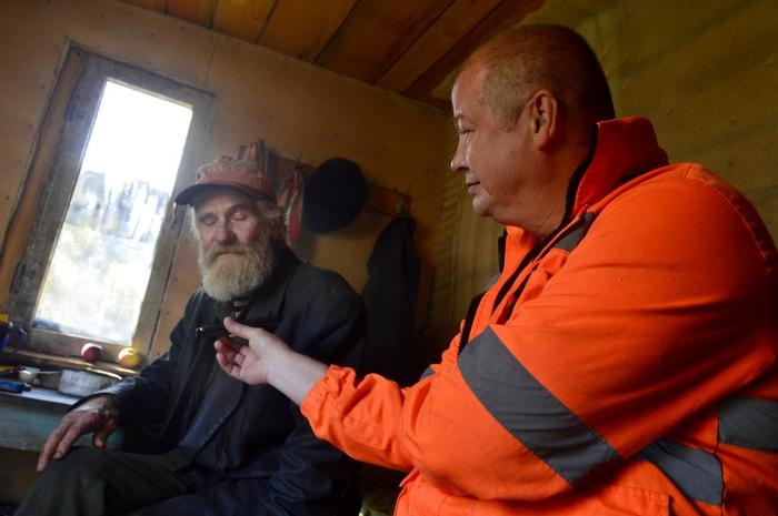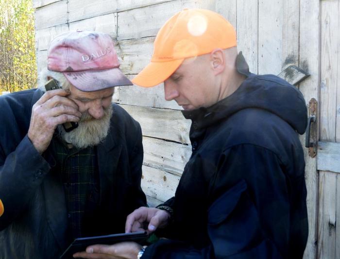 Деревня в семь домов на первый взгляд была пуста, но завидев машины, от одного дома выходит навстречу пожилой мужчина. На Анатолия явно не похож, держится свободно, хоть и настороженно.