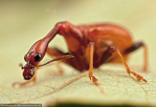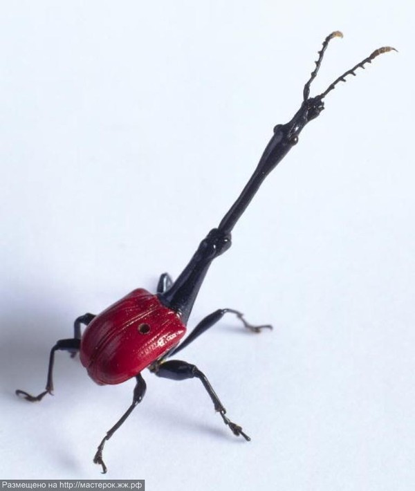 Долгоносик-жираф (лат. Trachelophorus giraffa) — своеобразная «смесь бульдога с носорогом» в мире насекомых. Конечно, никакого прямого отношения это насекомое к жирафу не имеет. Просто природа, наверное, решила нас немного удивить и у нее это прекрасно получилось.