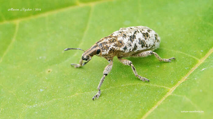 Хотя, если углубляться в систематику этого жучка, то он относится к так называемым корневым долгоносики (триба Cleonini). Личинки у них развиваются в корнях различных сложноцветных (полынь, тысячелистник, пижма и др.), где потом и окукливаются. Взрослые жуки грызут листья, черешки, стебли. По некоторым литературным данным, иногда могут попадаться на свекле, но ее не повреждают.