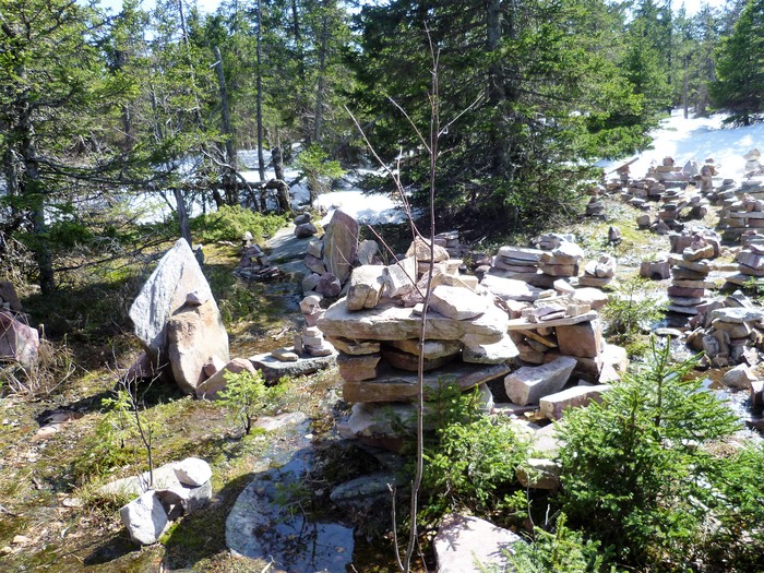 Пытаясь разузнать подробности об этом саде камней, много раз натыкалась на предположение, что это "туристы по приколу сад сделали" или "если сложить такую горку из камней, то твоё желание сбудется", либо "понастроили из камней на полянке множество каменных туров, издалека напоминающих военное кладбище".