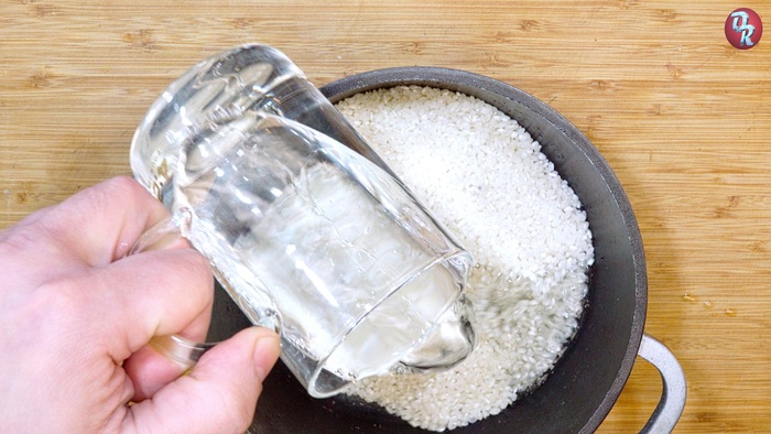 Некоторые ингредиенты необходимо будет подготовить чуть заранее. Например, рис стоит хорошенько промыть и потом замочить холодной чистой водой минут на 20. Сливочное масло тоже достать из холодильника заранее, чтобы оно размягчилось, и нарезать его на мелкие кубики. Либо можно его просто натереть на крупной терке - тут уж кому как удобнее.