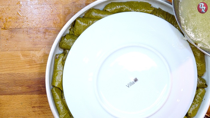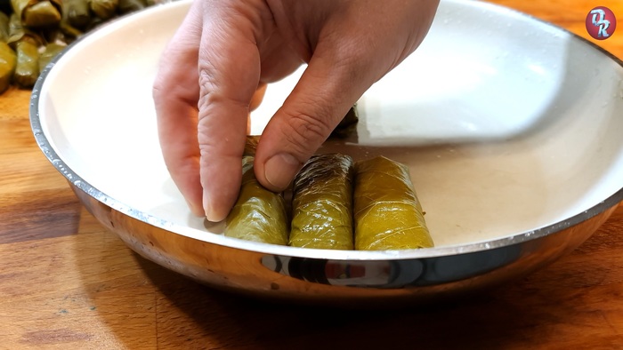 Кстати, о виноградных листьях - о них тоже нужно позаботиться чуть заранее. Их сначала промываем в проточной холодной воде, а потом замачиваем в чистой и опять же холодной воде. Примерно через 10 минут листья промыть и опять залить чистой водой. Процедуру повторяем 2-3 раза. После этого можно слить воду и откинуть листья на дуршлаг, чтобы оставшаяся вода стекала.