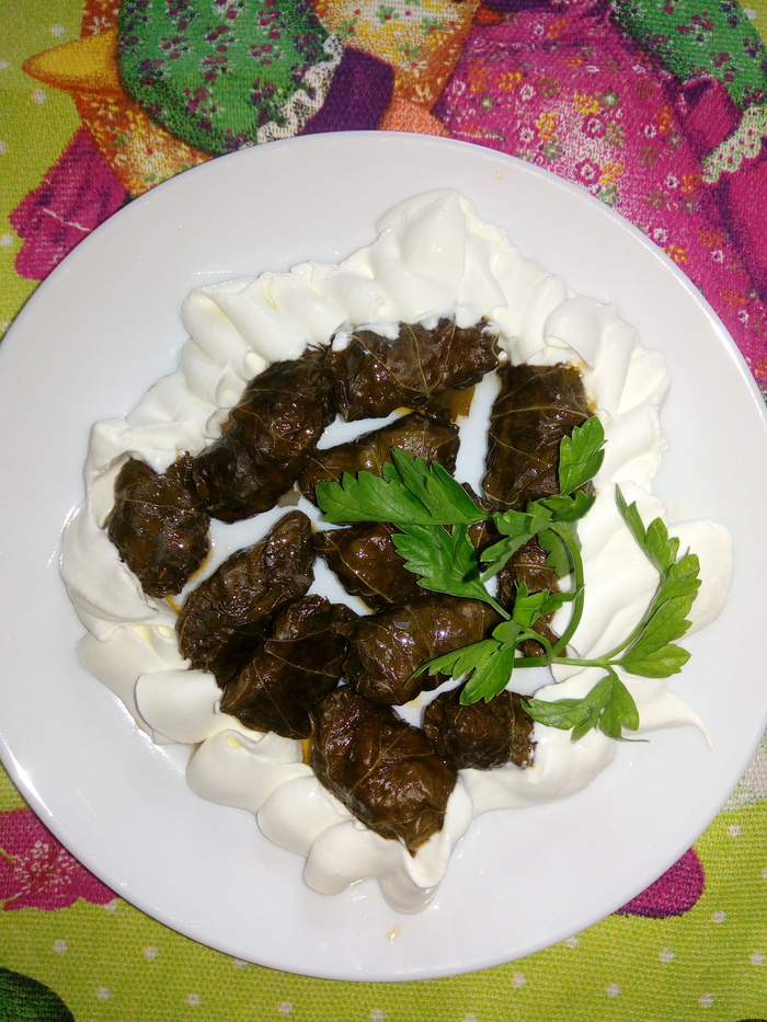 И ... очень важно. Фарш надо укладывать на шершавую сторону листочков. Гладкой наружу. Почему? А чтобы язык не царапать ... наверное!!! :)