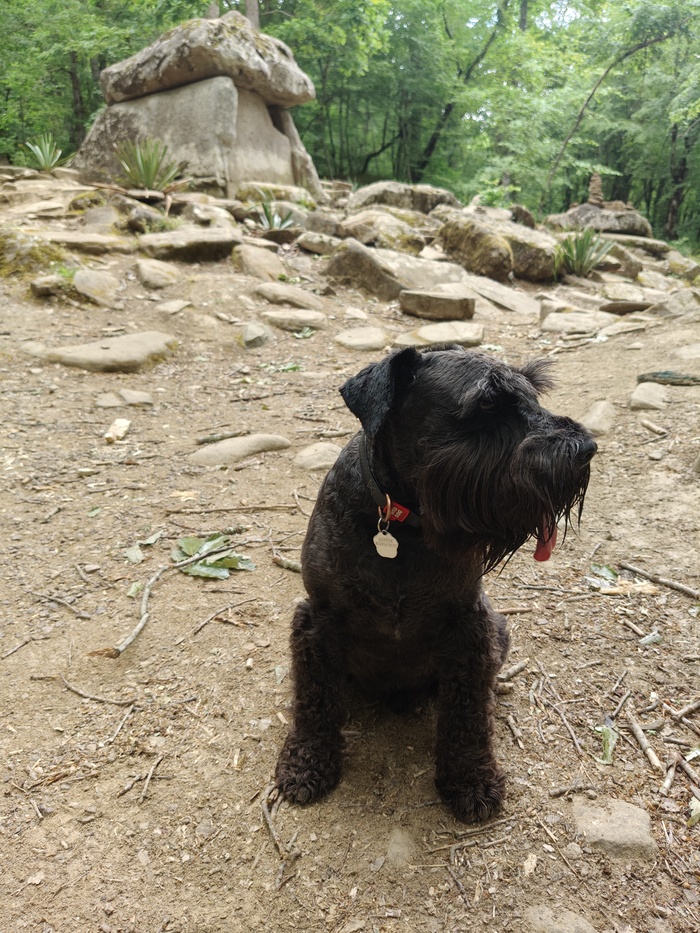 Примерно на середине пути маршрут делится надвое: один ведет мимо водопада, Лунного Камня, а другой устремляется круто вверх на корытообразный полуразрушенный дольмен. Ну я, конечно же, выбрал верхний путь. Природа здесь - обалдеть не встать. Свернул с тропинки, зашел в лес и стоял минут с десять, наслаждаясь полной тишиной, утром и чудесным воздухом.