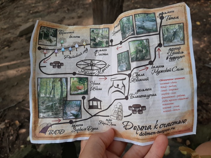 2. Дольмены. С недавних пор они стали платными. Вход 100 р. На входе дают бумажку, на которой написаны странные действа, связанные с различными объектами в этом комплексе.