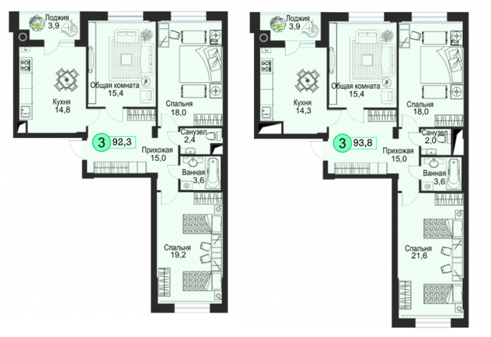 3 комнатные от 80,3 до 93,1 м2 - 50 квартир или 12%