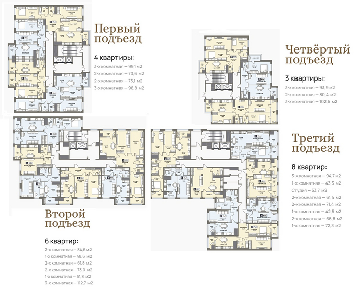 Площадь от 2,8 до 6,1 кв.м. Доступны в подъездах: №4 и №7