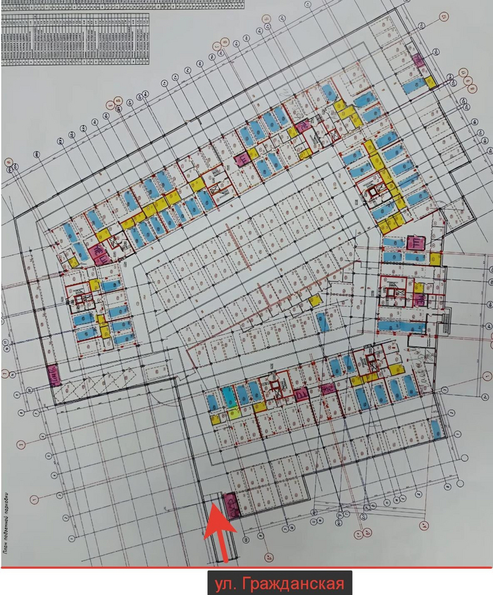 Въезд в паркинг осуществляется с ул. Гражданская (отмечен стрелочкой).
