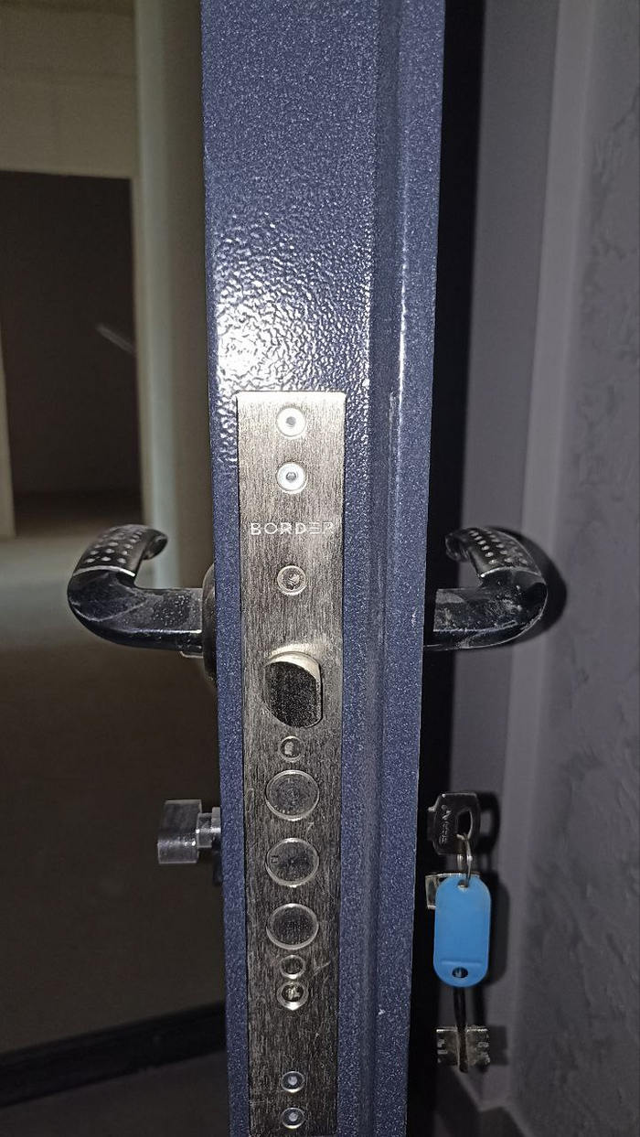 Характеристики входной двери - Border 1А, сталь - 1,5 мм, утепление - минвата, толщина полотна - 70 мм., цена - 25 тыс. руб.