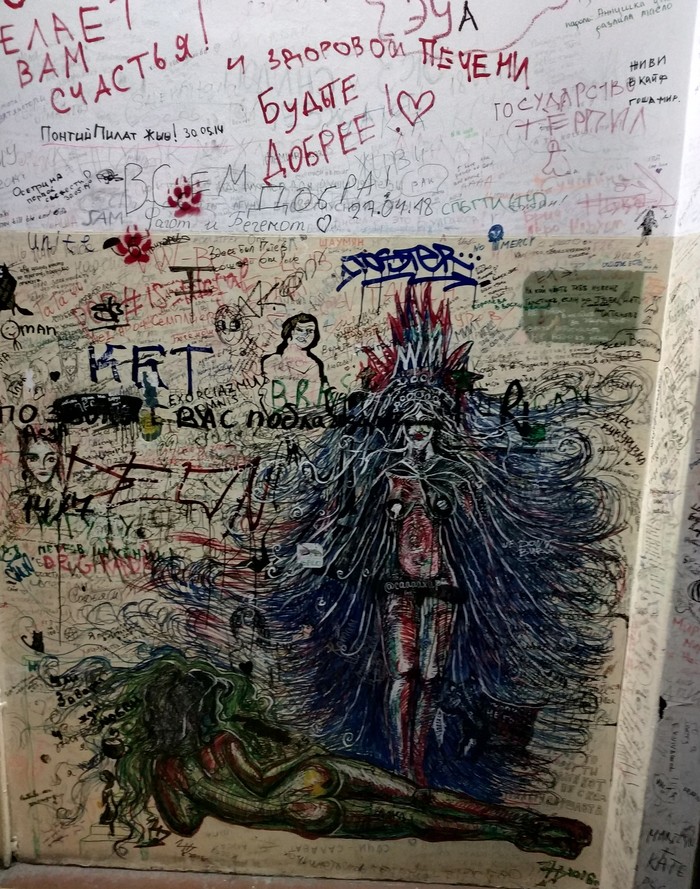 Наверное экскурсоводу, как и актеру, нужно сконцентрироваться на одном из зрителей чтобы работать с залом - Маргарита почему-то выбрала меня. Ну так-то неудивительно, я носил очки, длинные волосы и делал умное лицо. Она постоянно смотрела на меня и говорила что-то в стиле: "Ну вы знаете", "Ну вы помните", "Помните в тринадцатой главе Белой Гвардии был такой момент"? Я кивал с умным видом, а сам краснел, багровел и стеснялся. С творчеством Булгакова я тогда не был знаком абсолютно. Пробовал читать "Мастер и Маргарита" - бросил, скукота: пилаты какие-то, римляне, Иисус. Пьесы тем более не читал. "Собачье сердце" видел по телевизору. Но признаваться было стыдно и я молился только чтобы она ничего такого эдакого не спросила. Но она не спрашивала, она водила нас по дому и увлеченно рассказывала все новые и новые факты и интересные подробности. Черт побери, даже такому неучу как я было необычайно интересно. Тем более я люблю мистику, а в этом доме мистики было полно. Как говорится атмосферу “можно было ложкой есть”.