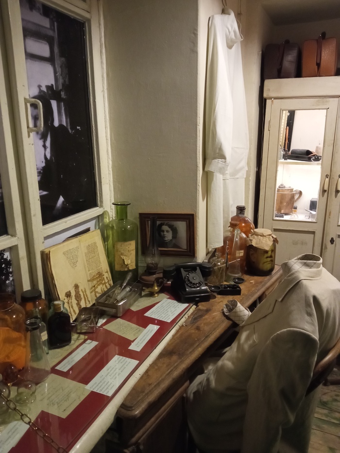 Сам дом одновременно находится в двух мирах реальном и вымышленном - Булгаков описал его в Белой Гвардии и музей так хитро сделан, как будто ты ходишь одновременно и по миру книги и по дому писателя, в котором он занимался творчеством и одновременно практиковал как медик. Здесь Михаил Афанасьевич был счастлив и несчастлив одновременно, как и его герои. Дом живет там, в двадцатых годах прошлого столетия, но одновременно пытается протолкнуться в наш мир.