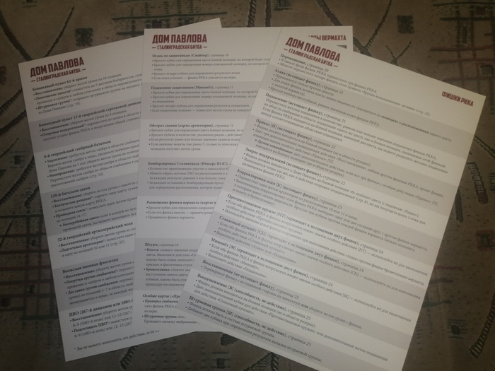 Правила написаны простым и доступным языком и отражают события Сталинградской битвы. Игра предполагает три режима один против коробки, двое против коробки, дво против игрока (защитники дома Павлова + 62армия, против немцев).