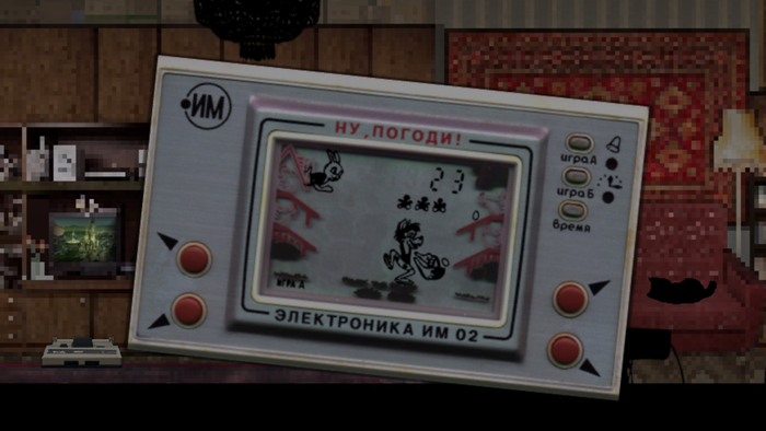 Но очень важно, что упор тут сделан не на геймплей и даже не на сюжет. Он сделан на ностальгию. Не по эпохе, она была настоящим адом, тут скорее ностальгия по детству и воспоминаниям о нём. Плакаты со Шварценеггером на стенах, пейджеры, кассетные плееры, VHS-магнитофоны, клюква в сахаре, молоко в треугольных упаковках. Тут очень много антуражного инвентаря. Более того: думаете автор просто нарисовал атмосферные задники? Нет, он брал фотографии тех времён и прогонял через пиксельный фильтр. Передачи по телевизору тоже взяты из тех времён. Ну по музыку и говорить нечего. В общем, 30-летним детям понравится.