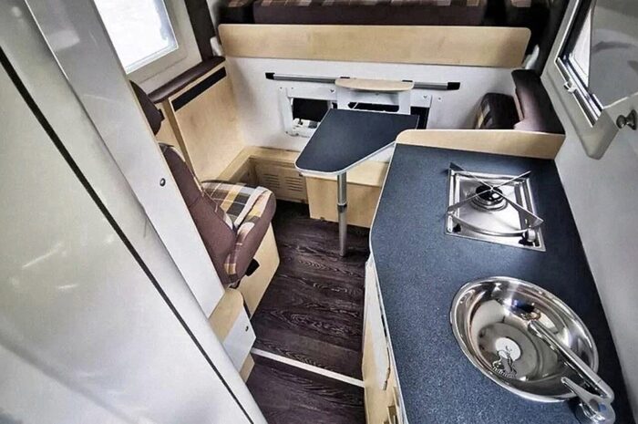 Но опять же, бывают исключения. Например прицеп Kemperus Чир, где кухня выдвигается сбоку.
