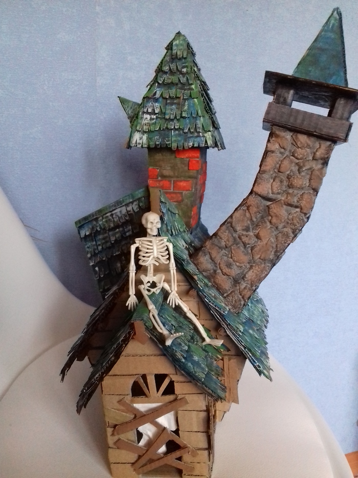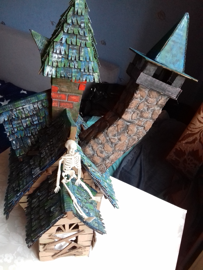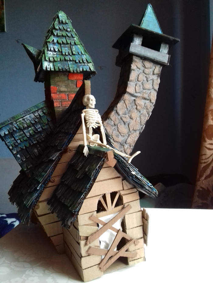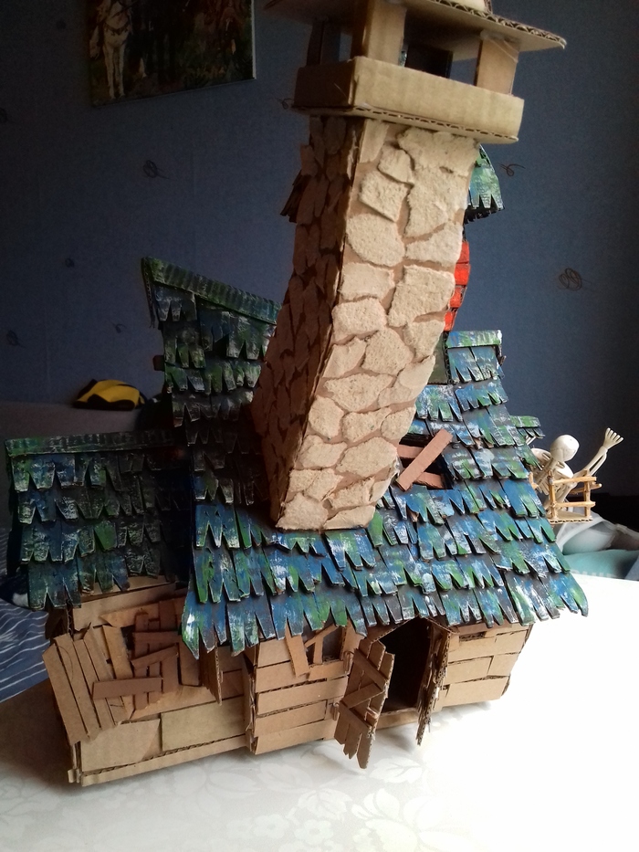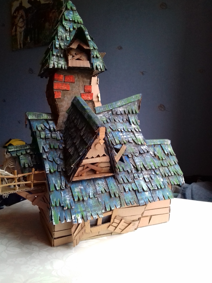 Склеила части дома. Обработала стены шпаклёвкой и уже зная что она деформирует все - следили, поддерживали и тд.