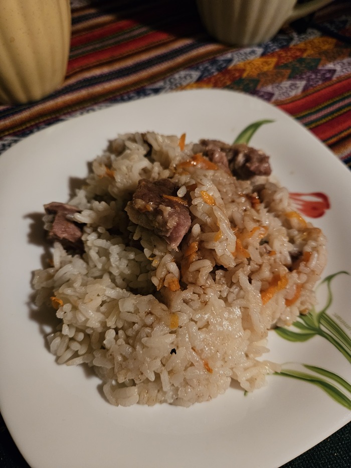 На основе грудинки были приготовлены уже стандартные каши - первая а-ля "по-купечески" с гречкой, луком и морковкой, а второй - "хочу быть пловом". Нормальный плов, конечно, не случился,т.к. всех ингредиентов под рукой не было, но тоже вышло отлично.