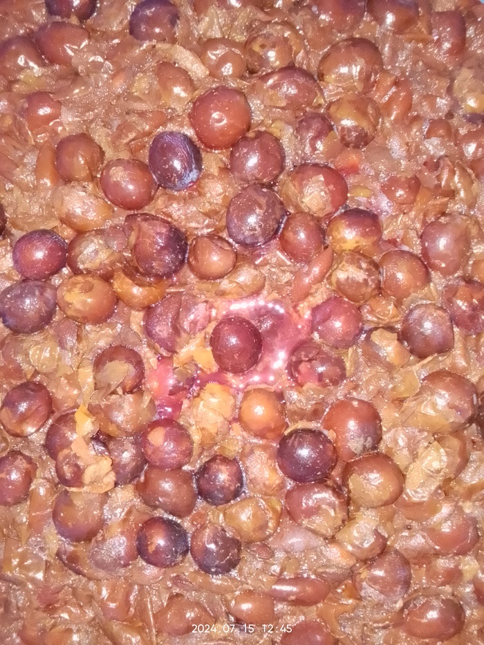 Время от времени,подходим к бочкам,мешаем жмых и ждём. Самые неугомонные виноделы начинают отжимать жмых уже через пять-семь дней. Лично я жмых отжимаю когда он уже своё отработал. Отработанный жмых на просвет становится прозрачный,без "мяса" внутри шкурки. Есть вариант отобрать жмых в период его "мясистости" ,залить водой с сахаром (декстрозой) и сделать вино второго сорта. Иногда вино второго сорта получается не хуже первого. Оно мягче,нежнее и легче. Но это на усмотрение винодела. Окончание брожения мы установим посредством того же самого ареометра. Он должен опуститься чуть ниже отметки ноль. Для тех,кто использует гидрозатвор, окончание брожения можно заметить тогда,когда вода в гидрозатворе чуть высосется в сусло. Кто пользуется перчаткой,то её тоже должно чуть всосать внутрь ёмкости. Всё!!! Первый этап завершён,можно выдохнуть.На вкус ,полученное сусло будет на вкус как редкостное пойло и многих ввергнет в уныние. Вкус будет кислый,горький,противный. Но именно так и должно быть!!! Некоторые,поддавшись эмоциям,выливают всё это и сетуют на то,что вино прокисло. Другие бегут за сахаром и начинают вино подслащивать.И то и другое абсолютно лишнее. И вином это называть ещё рановато. Пока это брага (сусло). Вином это станет после выпадения винного камня.