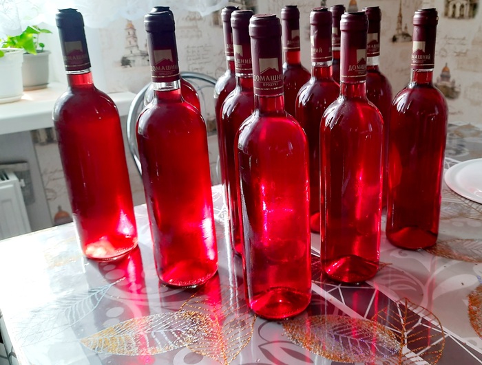А я сегодня самодельное вино из красной смородины фасовал. По стандартным винным бутылкам с укупоркой корковой пробкой, надеванием тука и наклейкой этикетки.