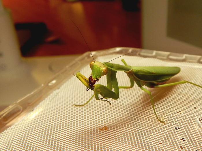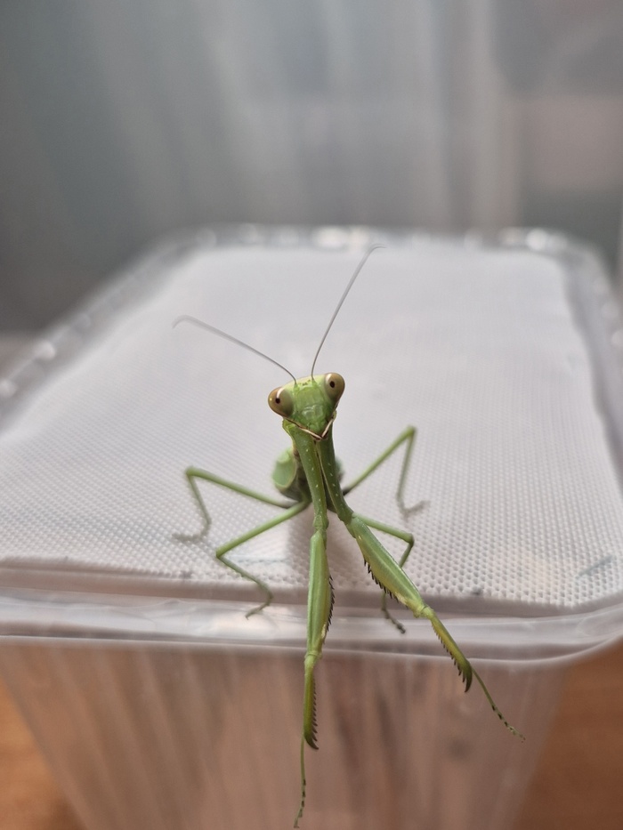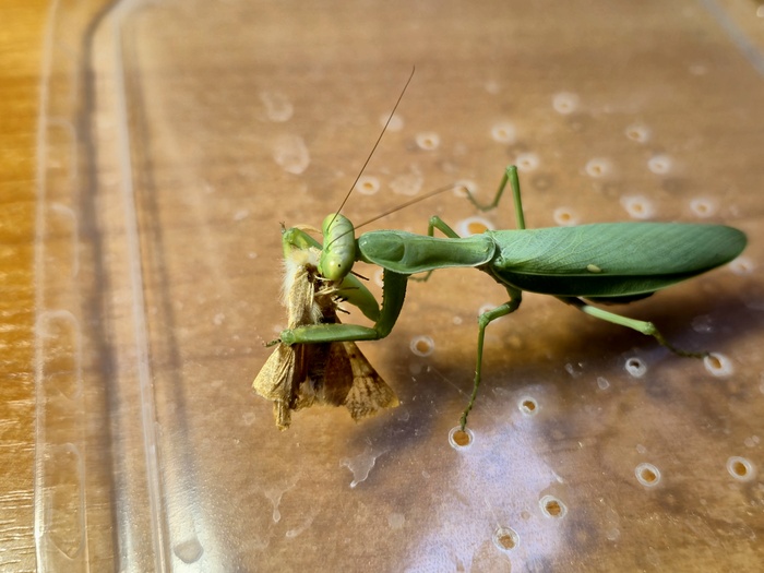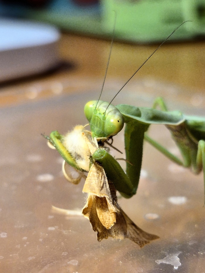 🪲📷 Я снимал богомола на телефон, как он ест уховёртку (прошлое shorts), и он прыгнул на мой телефон. Я решил снять на фотоаппарат богомола, как он сидит на смартфоне.