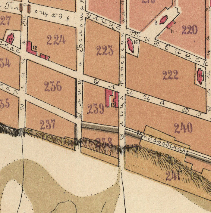 Здесь весь фокус в первую очередь сконцентрирован на квартале №239 второй части города, где под цифрой 13 имеется пояснение в правой части карты.