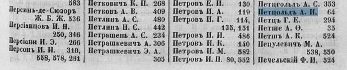 Настоятельно рекомендую обратить внимание на дату продажи пивоваренного завода, в этой информации присутствует некая развилка, о версии того, что завод на Георгиевской улице перешёл к Александровым уже известно, но кому же мог перейти пивоваренный завод на углу Большой Ямской и Поперечно-Тихвинской? В цитируемых выписках из книги были выделены Петцольды и о них мы кратко замолвим слово, так как один из архивных фондов косвенно намекает на все предпосылки к покупке этой промышленной недвижимости.