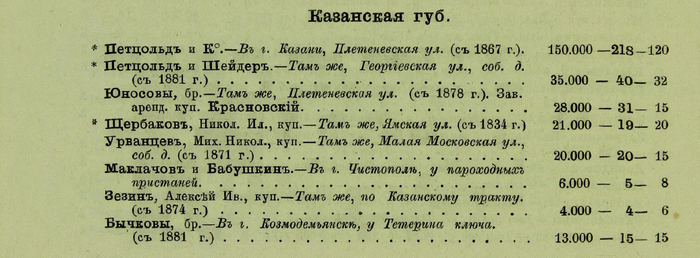 По данным «Казанской справочной книги. Изд. Ив. Иванова» от 1895 года: