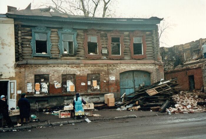 «4 августа, спустя пять дней, были подведены итоги пожара. Было истреблено 269 строений, в том числе 44 каменных, в которых жило около 2500 семейств. На Тихвинской улице, где начался пожар, сгорело 6 каменных и 23 деревянных строения. На Фуксовской(бывш. Поперечно-Тихвинская, прим автора) — 9 каменных и 34 деревянных, в том числе дом муллы Усмановской мечети Салихова. На Большой Мещанской улице огнем было уничтожено 9 каменных и 69 деревянных строений. На Варламовской улице (ныне ул. Межлаук) сгорело 20 деревянных и 7 каменных зданий. На Посадской (ныне ул. Т. Гиззата) — 16 деревянных и 3 каменных дома. На 3-й Ямской улице (ныне ул. Ямская) — 19 деревянных и 2 каменных. На 2-й Ямской улице (ныне ул. Нариманова) сгорело 25 деревянных и 4 каменных здания. Дом Императора Александра II, принадлежащий Человеколюбивому обществу, расположенный на данной улице, и школу при нем хотя и удалось отстоять, в жилых комнатах, где ютилась беднота, был произведен страшный хаос. На Односторонке Ямской (ныне ул. Ямская) сгорело 12 деревянных и 1 каменный дом».