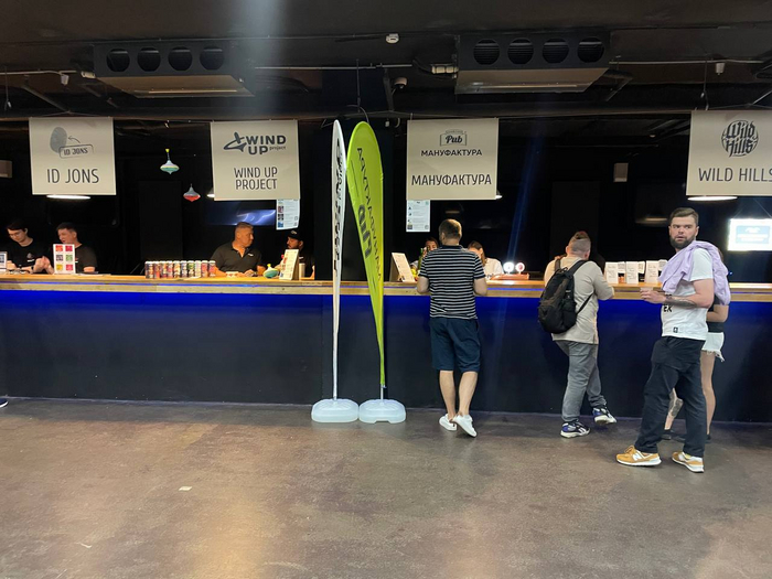 Однако, это был, в целом, неплохой ход. Люди из жары попадали в прохладное большое помещение, по периметру которого расположились стойки с пивом. Выглядело примерно так: