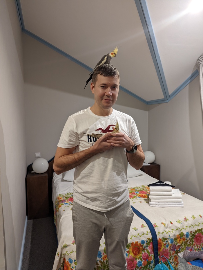 Пашка классный оказался пацан, я знаю , знаю что пол пернатого очень сложно определить в молодом возрасте , но мы решили его воспринимать мальчиком)Активный, любознательный, стал насвистывать что то интересное в первые же дни .К слову ,сейчас ему почти пол года и он говорит пару слов и насвистывает мелодию которой мы обучили.но всему этому он научился уже после печальных , но наверно, укрепивших нашу связь ,событий .