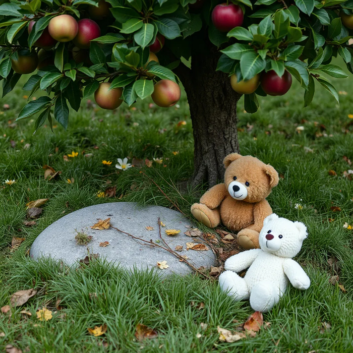 Мы похоронили Искорку под нашей любимой яблоней в саду. Лиза положила на его могилку свою любимую игрушку — плюшевого медвежонка. Каждый вечер она выходила в сад, чтобы посидеть рядом с его маленькой могилкой и рассказать ему о своем дне.