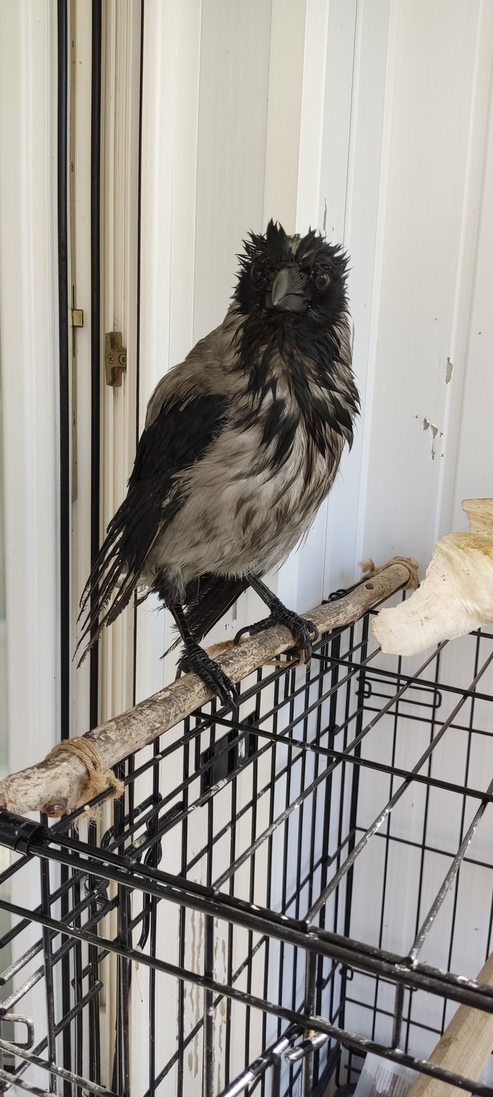 Минут через пятнадцать и вторая ворона вернулась опять на крышу курятника. И орёт. Наверное, первую ворону ищет. Ну я и ей закатала смачно. Но эту - наглухо. Упала она за забор и больше не убежала. Я хотела её к шесту привязать и повесить повыше в назидание остальным, но не стала. Оставила сарайным кошкам доедать. Кушайте, мои хорошие, мясо свежее. Свинцом не подавитесь.(Съели, кстати, вернулась - не было)