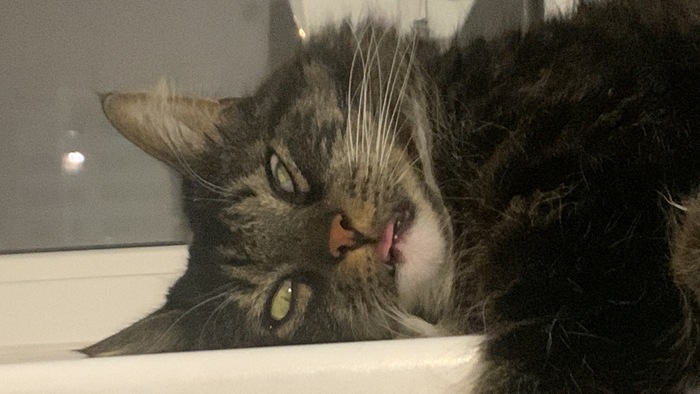 Моя Кошка по имени Кося. Подобрал в далёком 2014 с улицы. Минус клык в этом году, но подлецу всё к лицу.