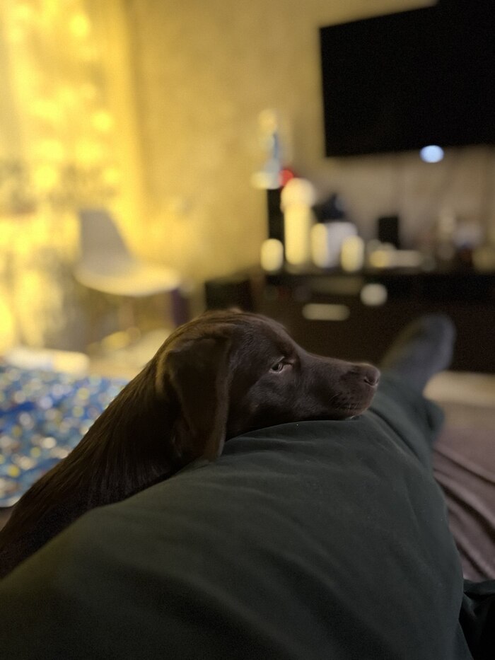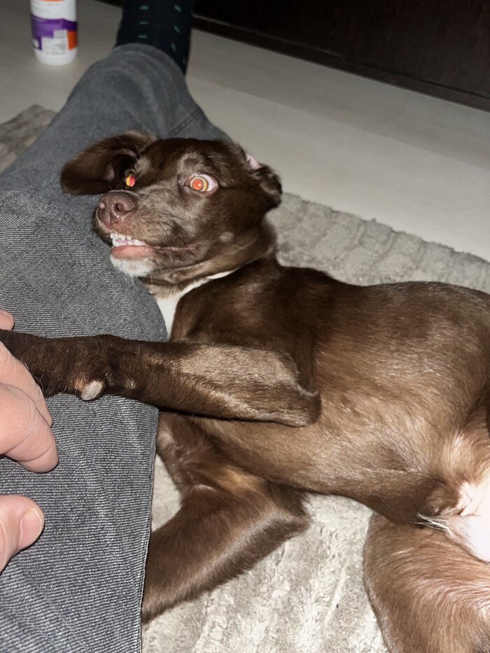 В целом проблем почти нет. Иногда, когда нас нет дома, грызёт коробки и пакеты (в основном ненужные 😅). Соседка говорит, что по утрам иногда может поскулить.