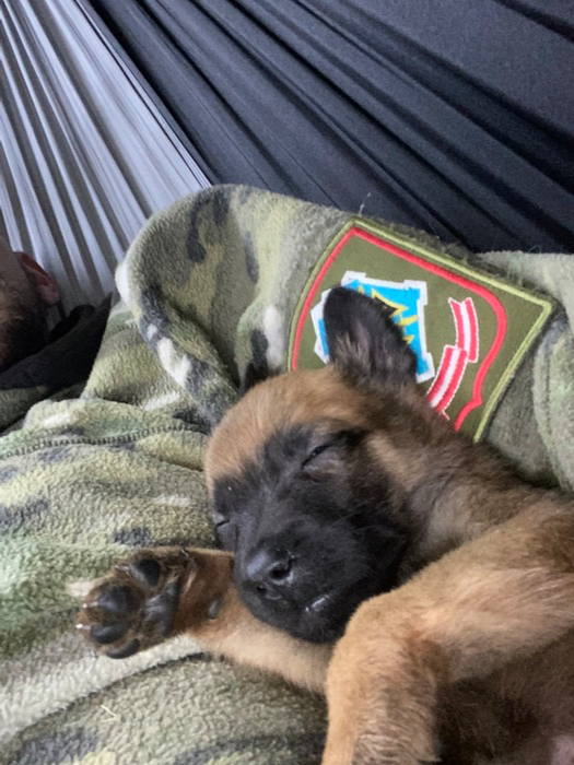 За месяц научились ходить в туалет на улицу — сейчас ему хватает двух раз в день, но в обед всё равно стараемся хотя бы минут на 10 выйти погулять.