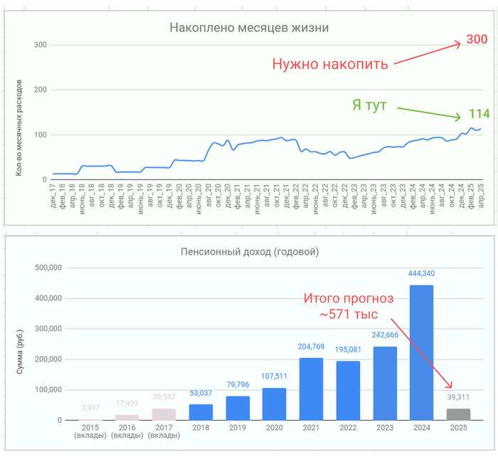 Уже 8 год формирую пассивный доход, верю что смогу достичь своей цели. Звёзд с неба не хватаю, обычный работяга из региона, докажу себе и вам, что это возможно. По итогу хочу получить за год 1.000.000 рублей пенсии. Мой путь медленный и долгий, источник тут.