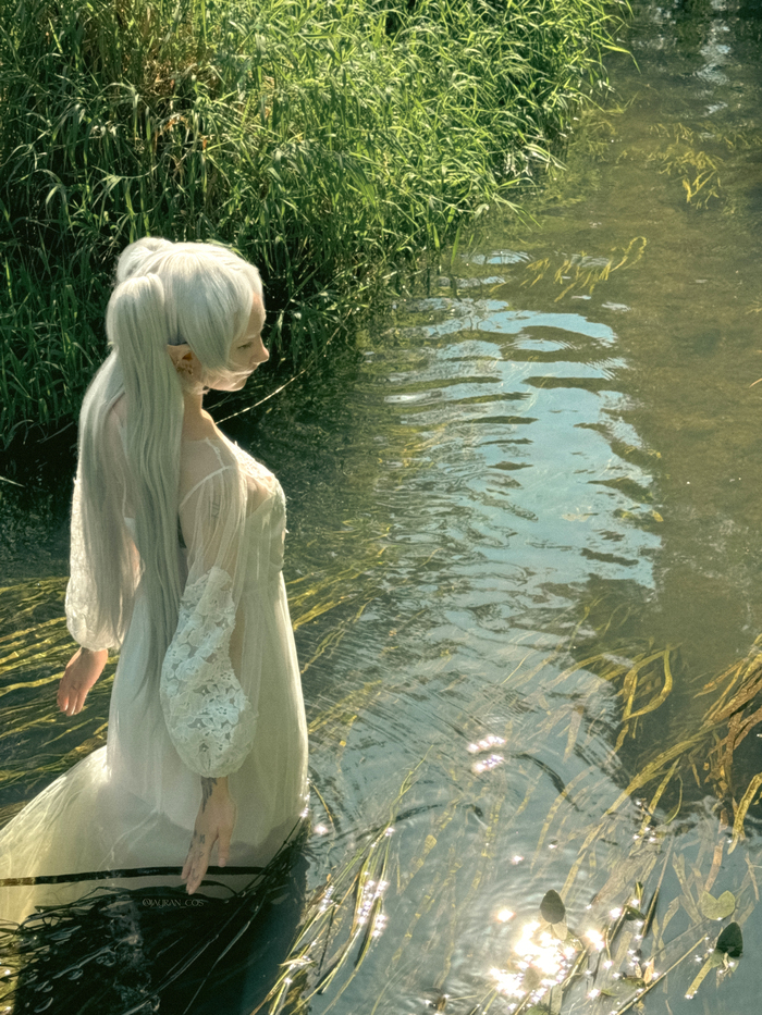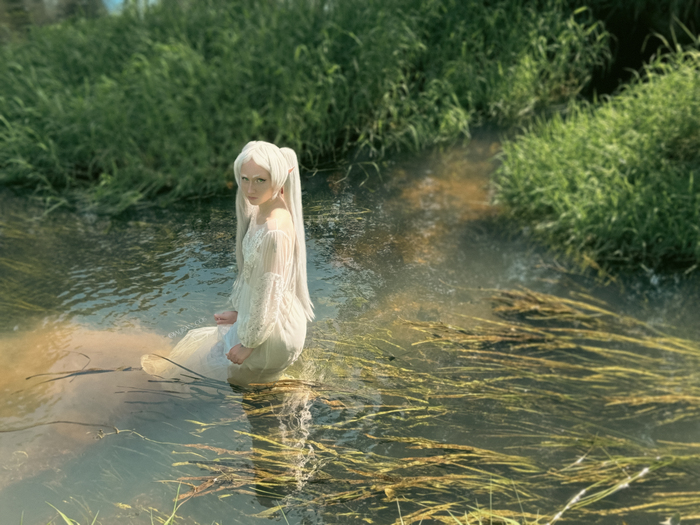 Ради этой части съемки я вообще купила костюм Фрирен! У меня давно лежало красивущее платье, которое я спала и видела на Фрирен. Еще меня очень прельщала речка возле дачи в деревне, в которой я тоже хотела пофоткаться очень давно - уж очень красивая там вода и водоросли.