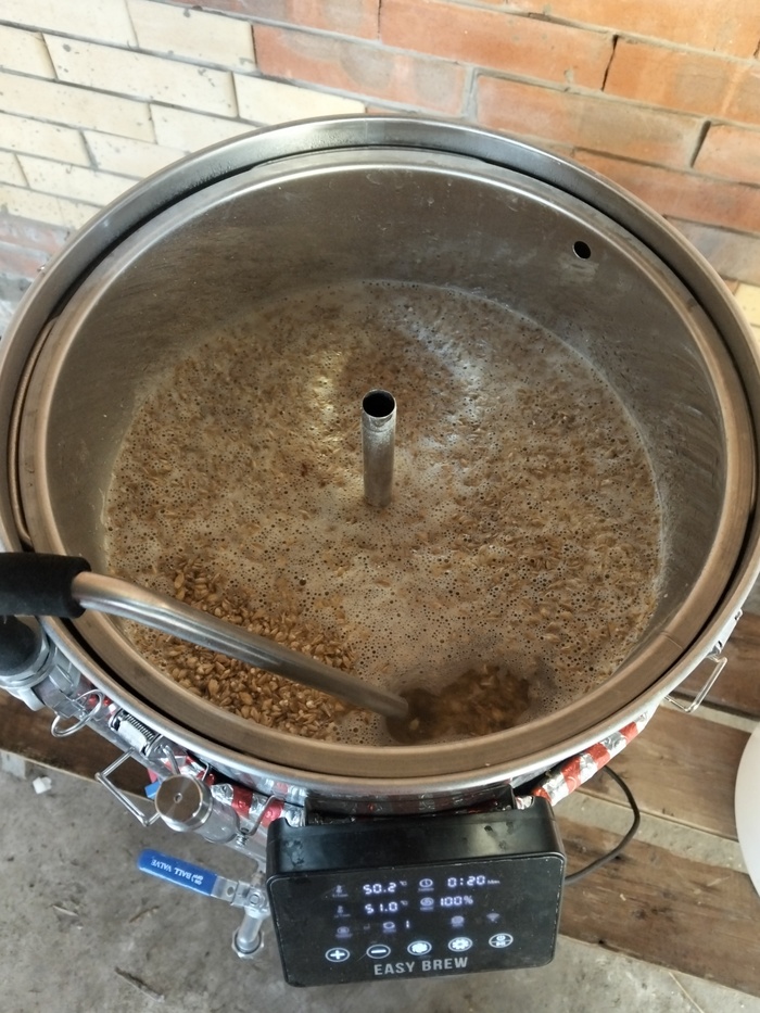 Итак, спустя кучу времени я опять решил запилить пост. Решил даже не смотря на то, что многим может быть не интересно) За плечами 5 в варок. Первая была ± удачная, я поспешил и в итоге оно оказалось не очень газированное; вторая и третья варка была в один день ( отважился в отпуске, варил с утра и звмывал оборудование уже часов в 7 вечера) и в итоге браггат получился очень вкусный, созреть до конца не успел, попил сам и раздал на работе, а вот пшеничка, сваренная после него ужасная вышла. Горько-кисло-мерзкая. Ещё на стадии брожения уже все пошло как то не так. Последние 2 варки ещё стоят зреют. Делал ипу и классическое пиво с добавлением пшеничного солода. Т.к. пшеничному пиво долго зреть не надо (оказывается!!!) второе уже потихоньку подъедаю. Сестра сказала, что похоже на хугарден. Ну и естественно комплименты и новость о необязательном созревании пшенички побудили меня сварить прям настоящую пшеничку. Погода шепчет (я варю в беседке), надо начинать