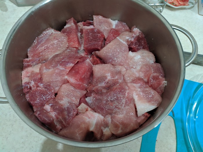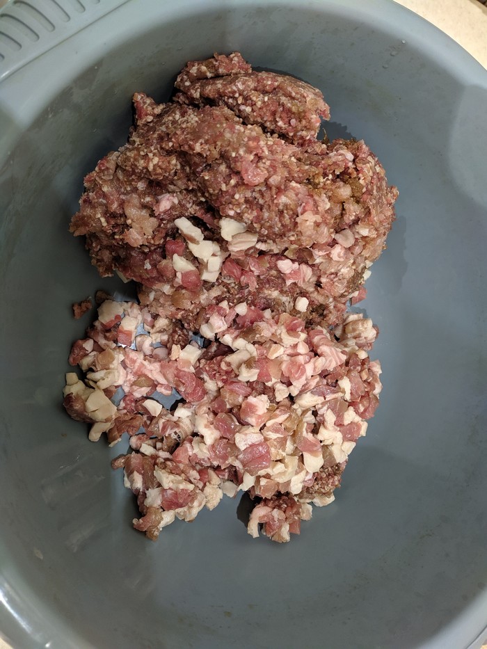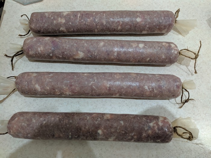 Как там по традициям кликбейтных заголовков кулинарных постов, "Соседи мурчат от удовольствия взяв в руки только один....". В общем увлекся папа идеей домашней колбасы. Опытным путем пришел к идее переработки свиной рульки. Специи родители не любят, поэтому только соль/перец/чеснок.