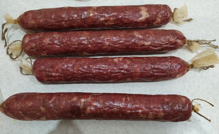 Единственное папа вздыхает, что стоит все в итоге дешевле чем покупать колбасу в магазине, но съедается она очень быстро).