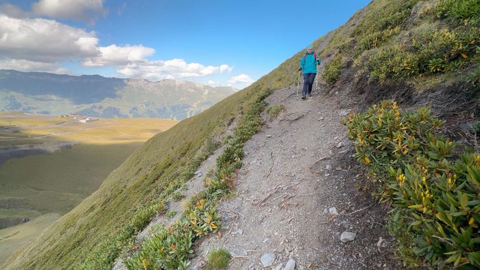 Карабкаясь, нагнали женщину с посохом: преподавательница истории из Иркутска, Марина, в горах не новичок, но больше в своих, сибирских. Сетовала, что с треккинговыми палками в самолет не пустили. Алеша предложил ей свои – она отказалась и мужественно продолжила взбираться. Правда, ее рюкзак был существенно меньше наших: основную ношу взял на себя взрослый сын, с которым они путешествовали вдвоем.