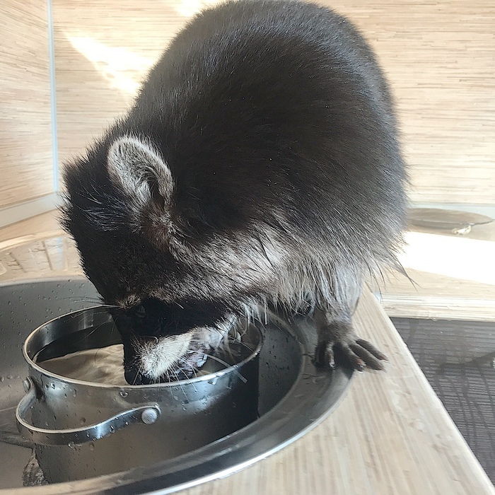Притащили домой взъерошенное, лохматое чудище, с когтями на выпуск и шерстью дыбом. В таком виде он был до ночи, между делом съел все, что не было приколочено, и даже умудрился отгрызть кусок целофановой перчатки, которой я набираю корм собаке.
