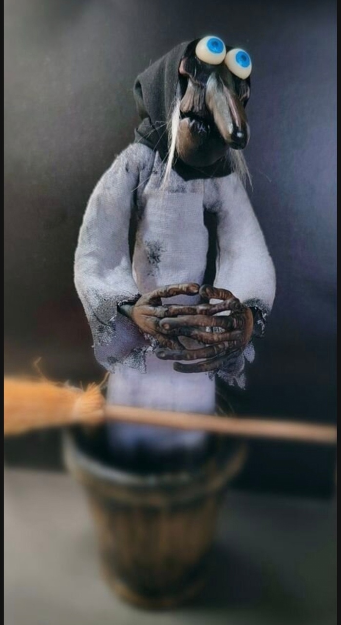 Баба яга персонаж мультфильма. Фигурка выполнена в смешанной технике. Подвижная. Рост 20см. В комплекте баба яга, ступа, метла и шаль на бабуле. Все выполнено моими руками. Голова, руки, ступа из полимерной глины, окрашены акриловыми красками и лак.