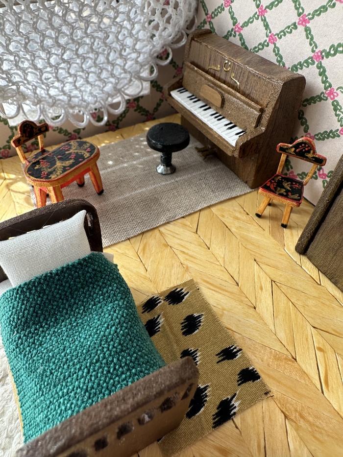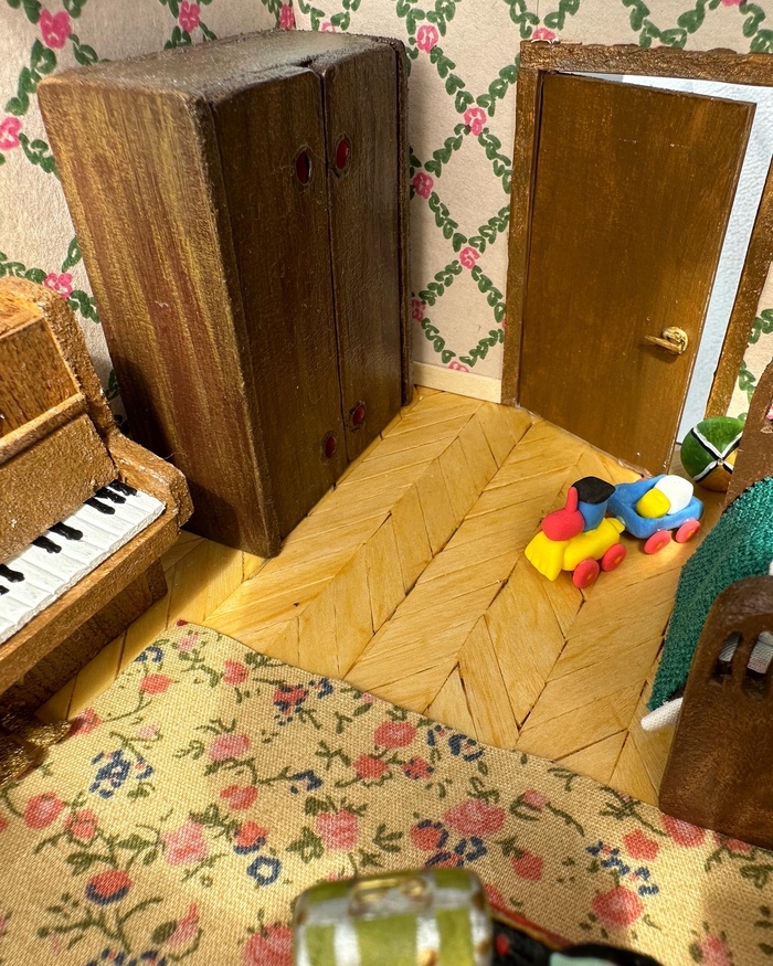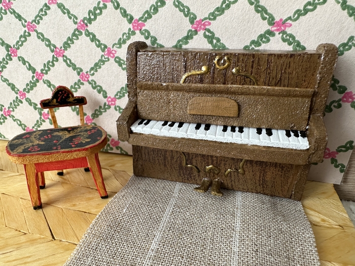 Все предметы в комнате выполнены вручную. Главное украшение комнаты - пианино, оно открывается и закрывается
