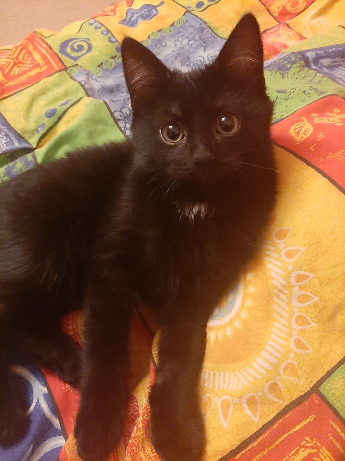 Так случилось, что осенью прошлого года у моего кота обнаружили неизлечимое заболевание (печень и почка). Длительное лечение не дало результат. Со слезами было принято решение усыпить. Кот был до неприличия умный, воспитанный, деликатный. Прожили мы с ним душа в душу 12 лет. Муж тоже его любил, поэтому сказал твердое «больше никаких животных в доме». А я всю жизнь с котами/кошками. Наконец-то уговорила взять котенка. Я всегда хотела черного мальчика, муж одобрил. Приступили к поиску (вернее я приступила, а муж только спрашивал ежедневно нашла ли). Мне было принципиально важно взять с приюта/передержки, чтоб я смогла помочь кому-то. Но увы, черных котят там нет на данный момент. По случайности, знакомая искала тоже определенного цвета котенка, нашла. Я от балды спросила где /у кого/откуда вообще. Мне дали контакты. Там был черный мальчик! Итак, у мамы-кошки нет молока/отказалась кормить. Сердобольная тетушка забрала комочки к своей кормящей кошке. Котятки подросли, их пришлось вернуть обратно к маме-кошке. В подъезд (надо сказать, что тетушка по несколько раз на дню бегал их проверять). Но не всем пришлись по душе такие соседи. Кошачью семью выкинули в гаражи. Мне отправили фото мальчугана. Ну мое, точно мое. Надо брать.