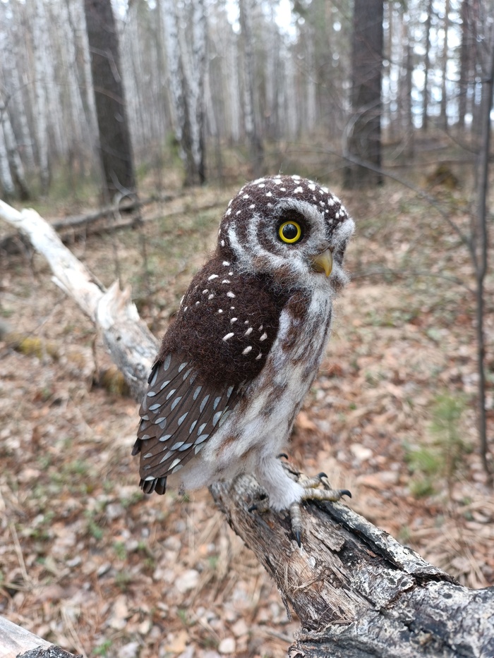 Птица выполнена в технике сухого валяния. Голова на поворотном шплинте (360 град.)