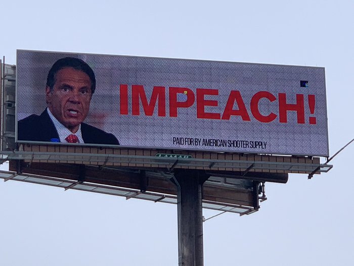 Неизвестные и вовсе купили рекламу на дорожных билбордах, на которых разместила фотографию Куомо с требованием объявить ему импичмент.
