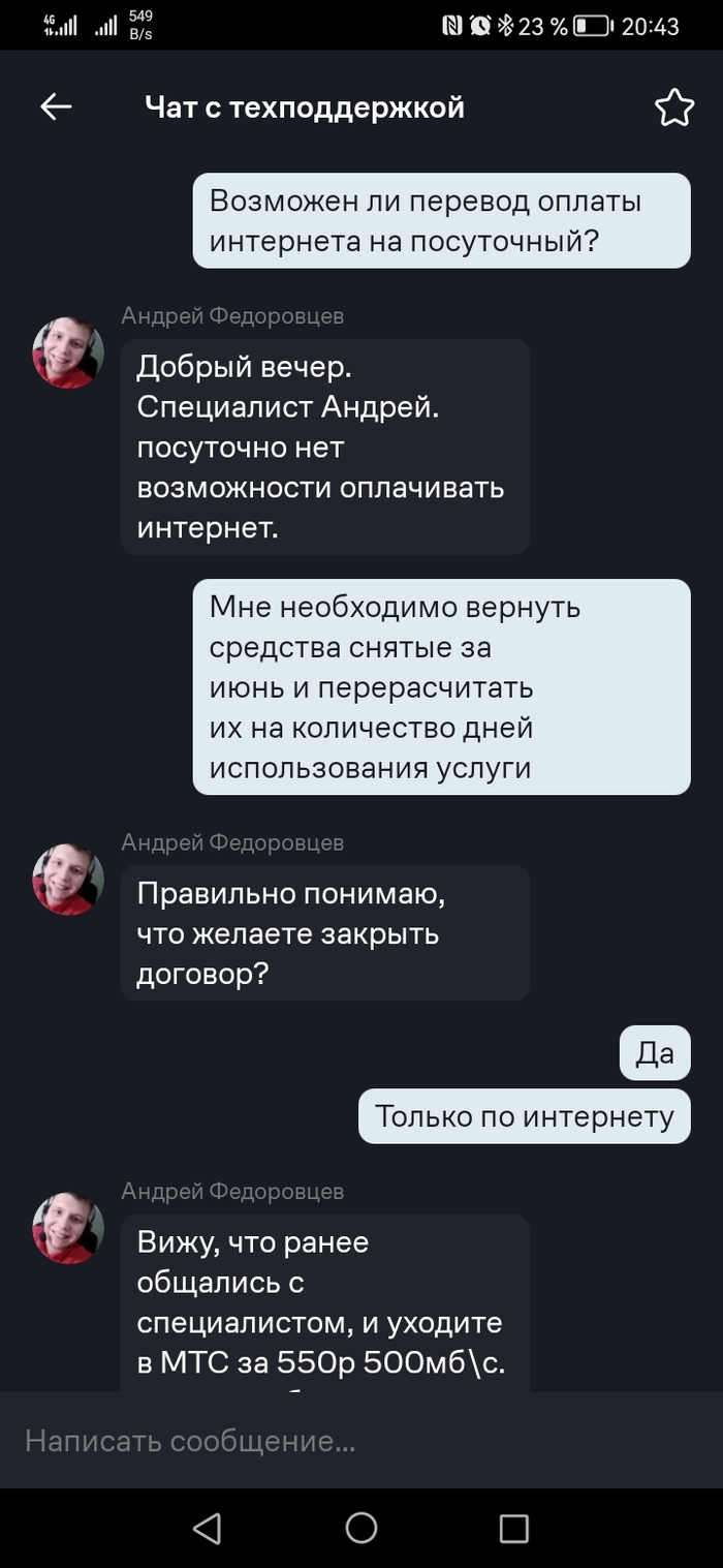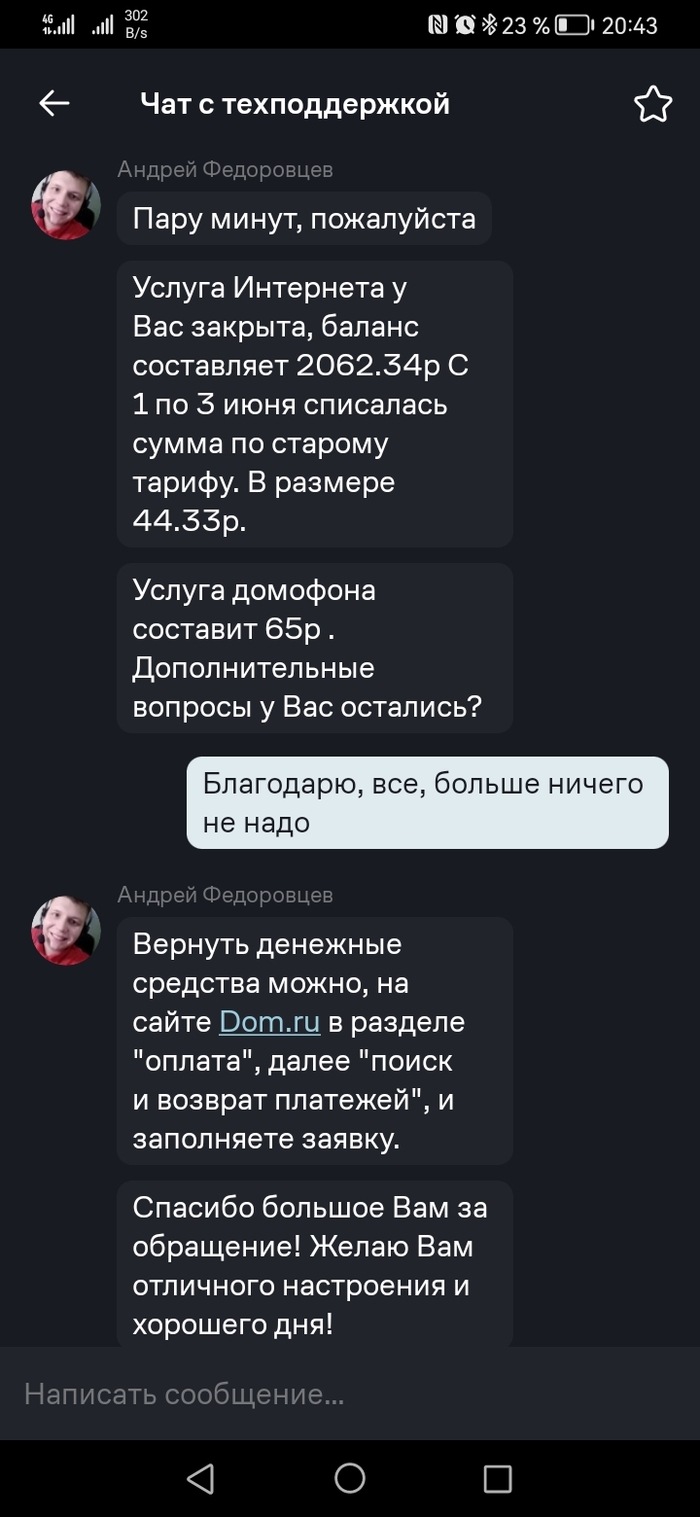 04.06.2022 после 5 дней от начала договора, я решил отказаться от договора , подумал что возможно будет вернуть оборудование , т.к прошло не более 7 дней даже! Оставил заявку на сайте , перезвонил в техподдержку , сообщил что хочу расторгнуть договор по причине некачественных услуг и переходу к другому оператору. Мне сообщили что выставят счет в 10 тысяч на оплату оборудования. Ни на какой контакт специалист поддержки компании не шел, утверждают что я принял условия! Однако - условия мне не назывались , мне обманом навязали покупку оборудования в непонятную, не банковскую - рассрочку! Я не вижу проблемы в том что бы ДОМ.ру принять новое оборудование назад .