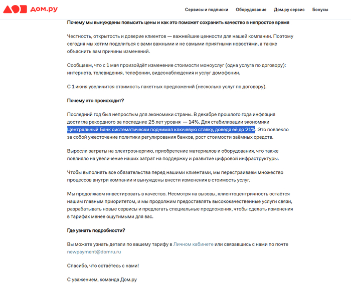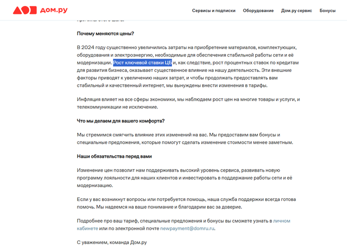 Дом ру и ключевая ставка